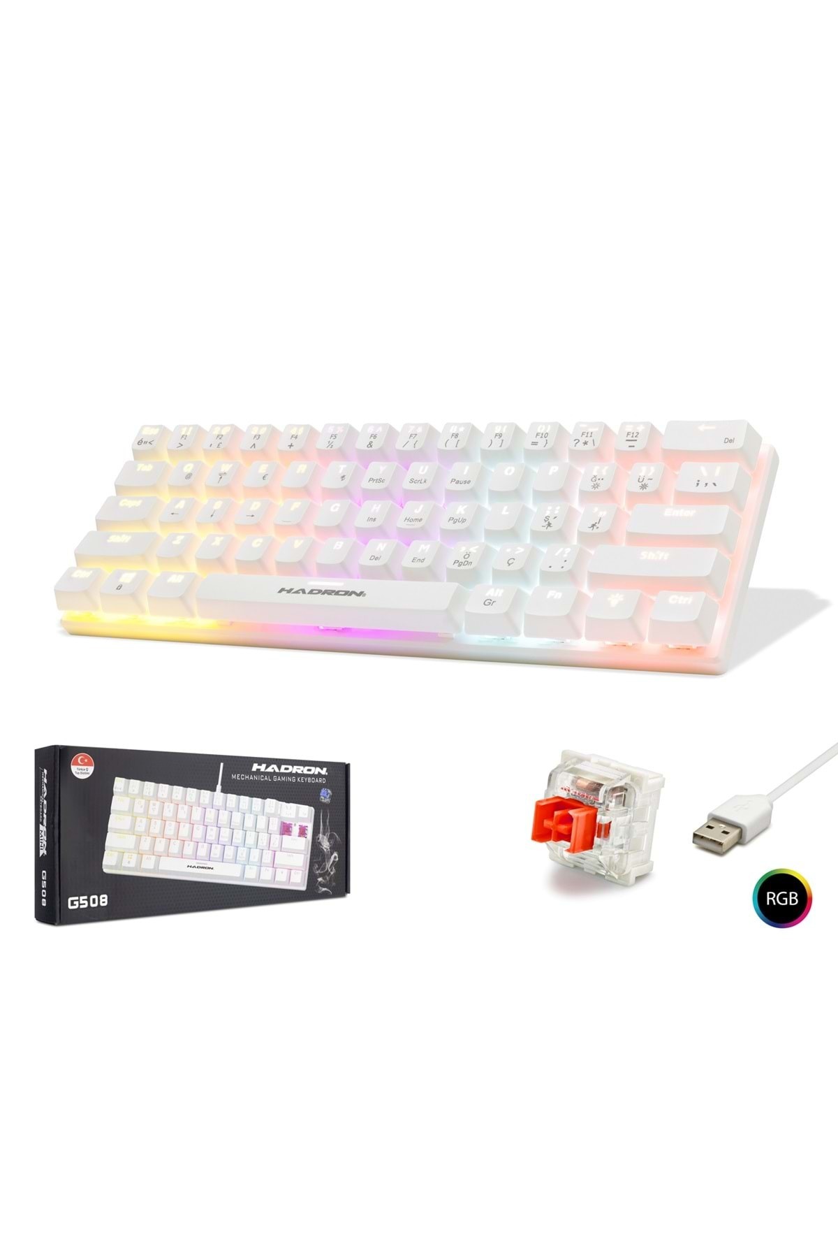 G508R 61 Tuşlu Mekanik Oyuncu Klavyesi - Beyaz (Red Switch)