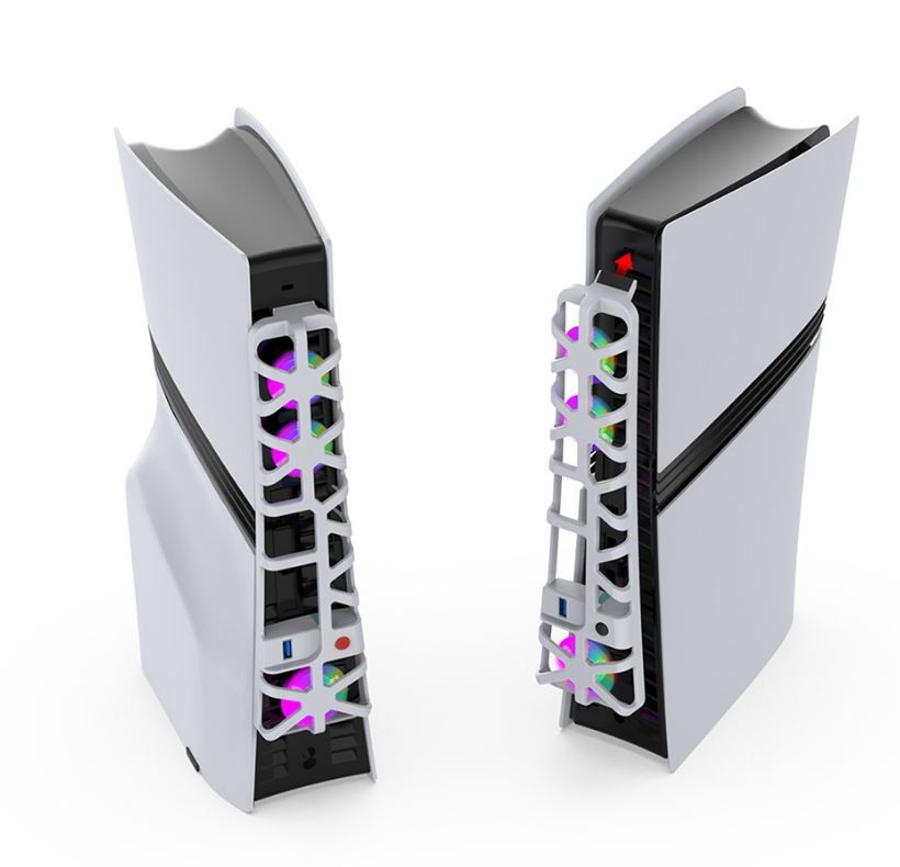 PS5 Pro konsolu için özel olarak tasarlanmış, verimli soğutmayı şık bir görünümle birleştiren son teknoloji bir soğutma fanı sunuyoruz. Üç hız seviyesiyle donatılan fan, hafıza fonksiyonu sayesinde etkinleştirildiğinde önceki ayarlarına otomatik olarak geri döner. Soğutmayı başlatmak için cihazı PS5 Pro'nun arkasındaki USB bağlantı noktasına takmanız yeterli. Renkli RGB arka aydınlatma, oyuna son teknoloji bir hava katıyor ve oyun atmosferini güzelleştiriyor.