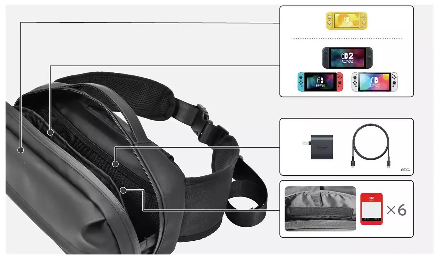 Nintendo Switch 2 için çift amaçlı çapraz askılı çanta.