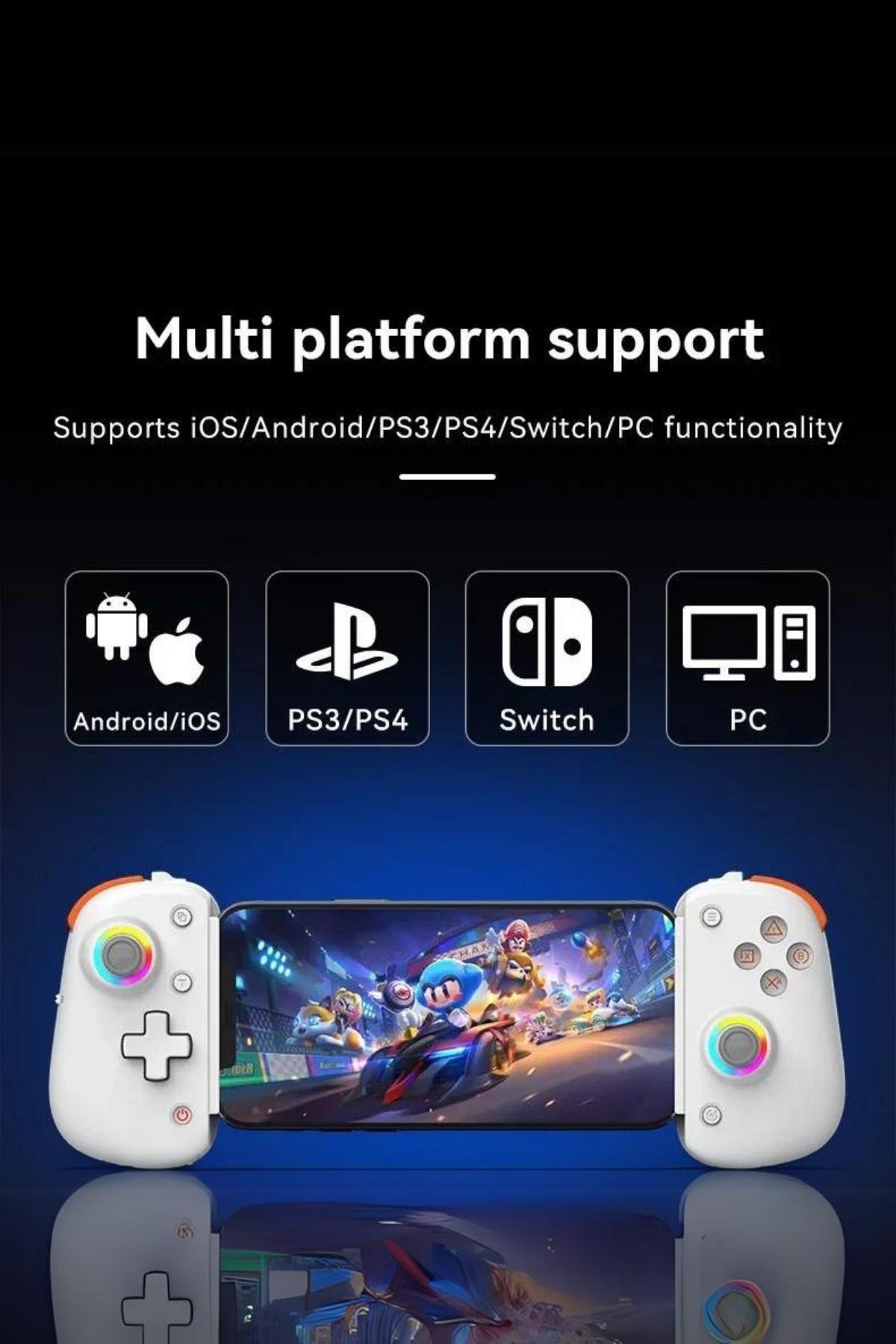 BSP D8 PRO RGB Telefon Tablet P3 P4 Android IOS için Bluetooth 5.2 Joystick Gamepad Beyaz