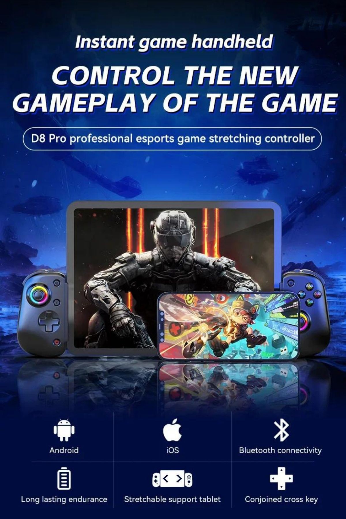 BSP D8 PRO RGB Tablet Oyun denetleyicisi kablosuz P3 P4 Android IOS için Bluetooth Joystick Gamepad